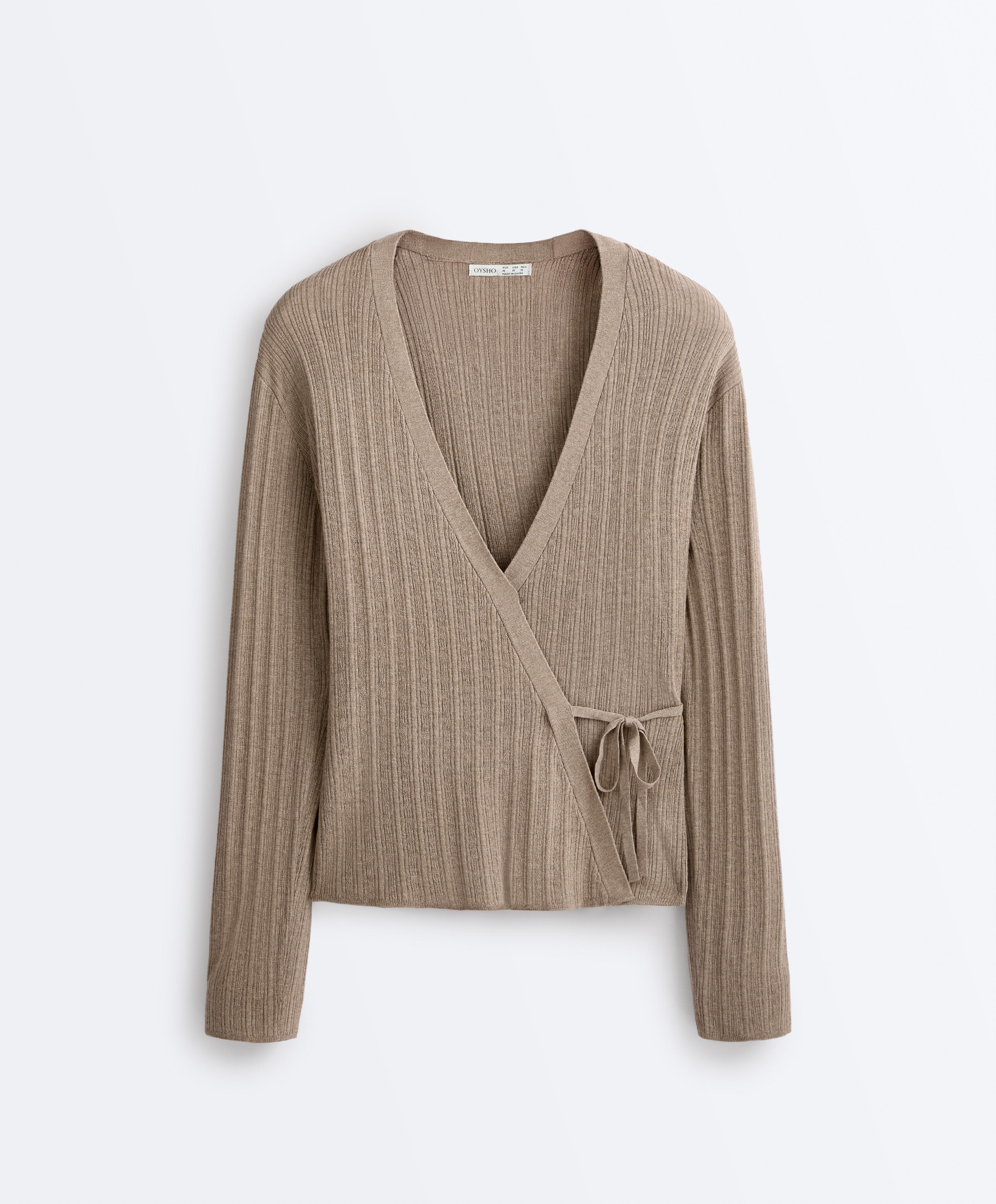 Yan bağlamalı Rib örgü ceket
