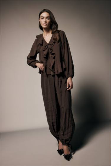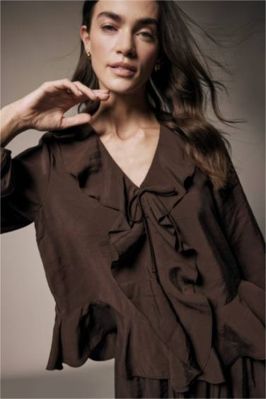 V Yaka Modal Volanlı Bluz