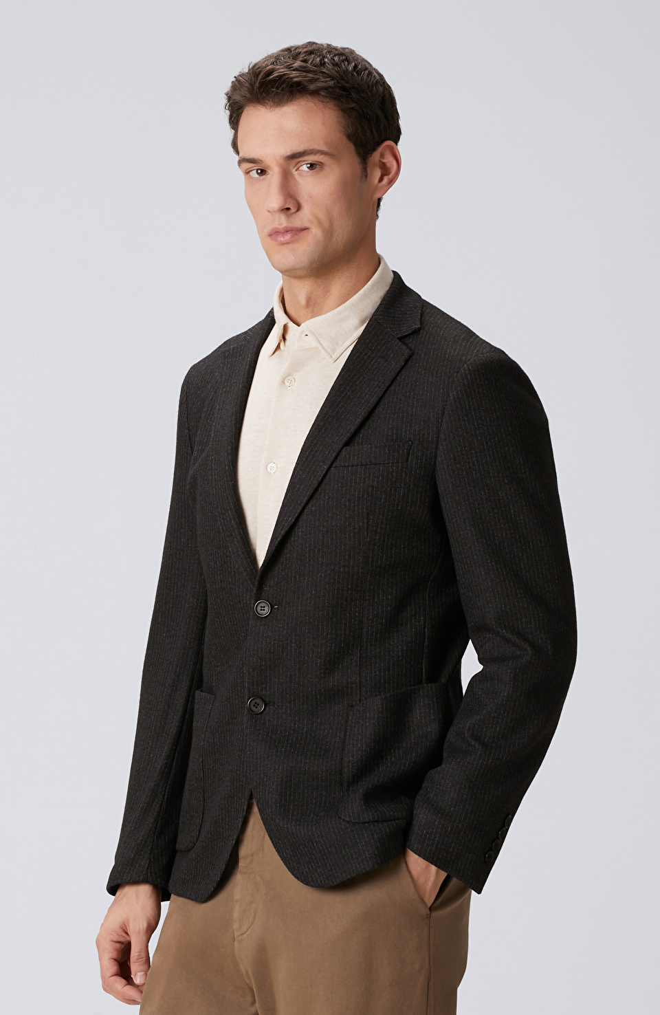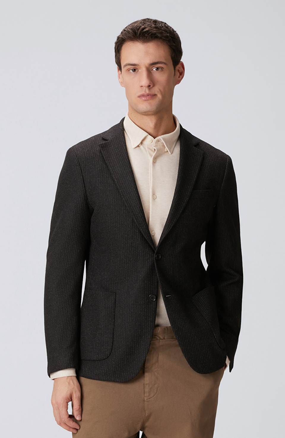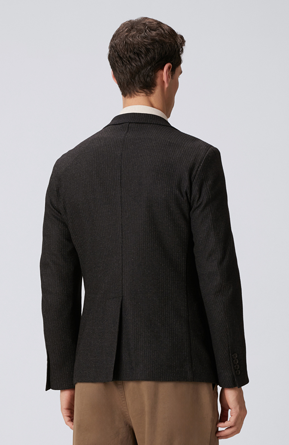 Siyah Çizgili Yün Karışımlı Örme Ceket