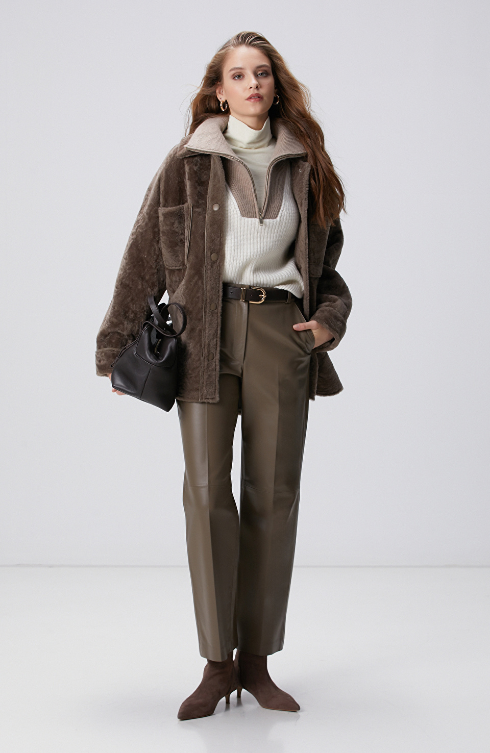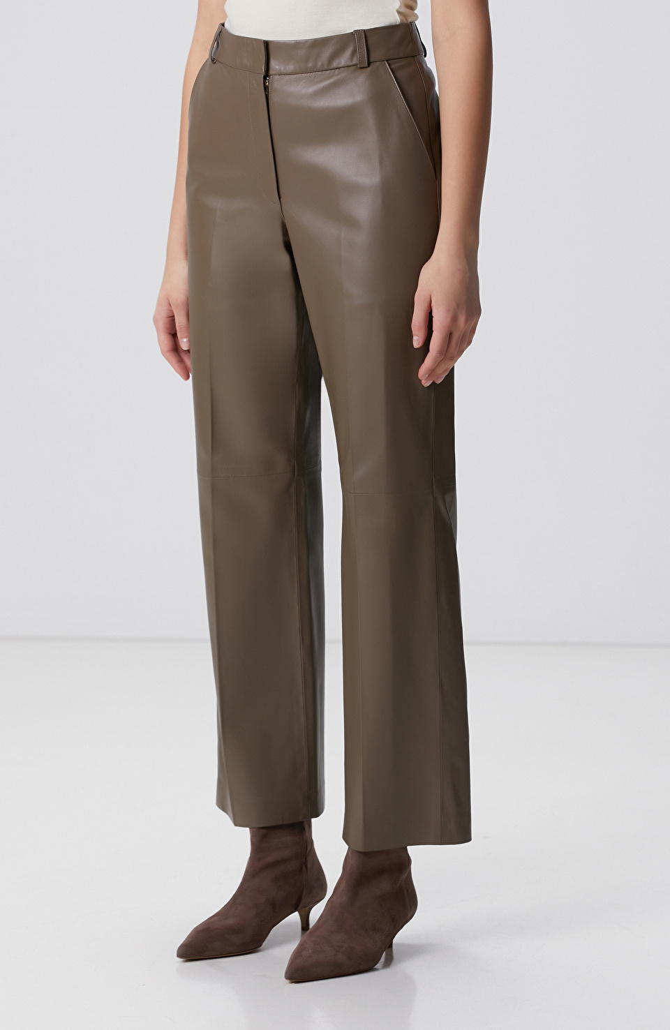 Vizon Yüksek Bel Deri Pantolon