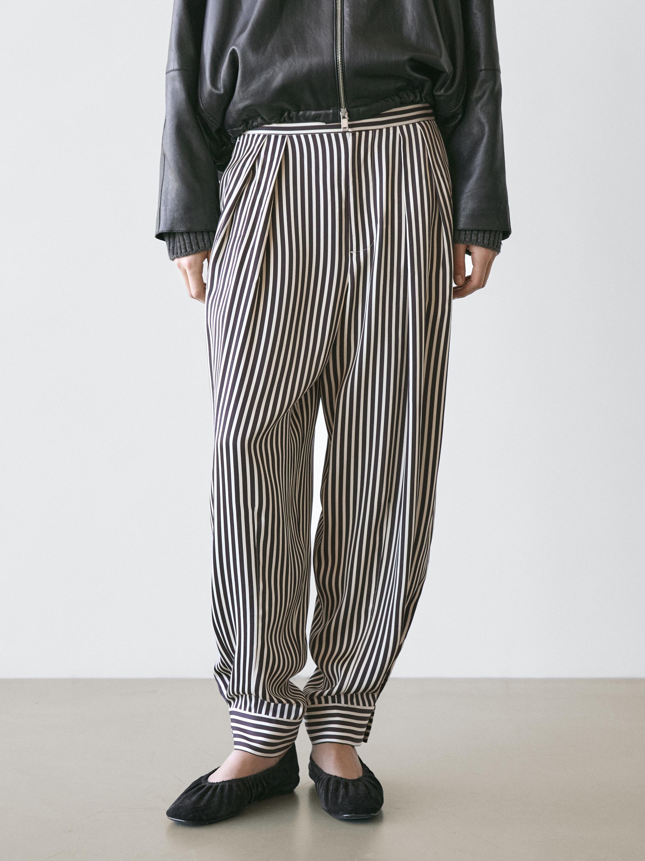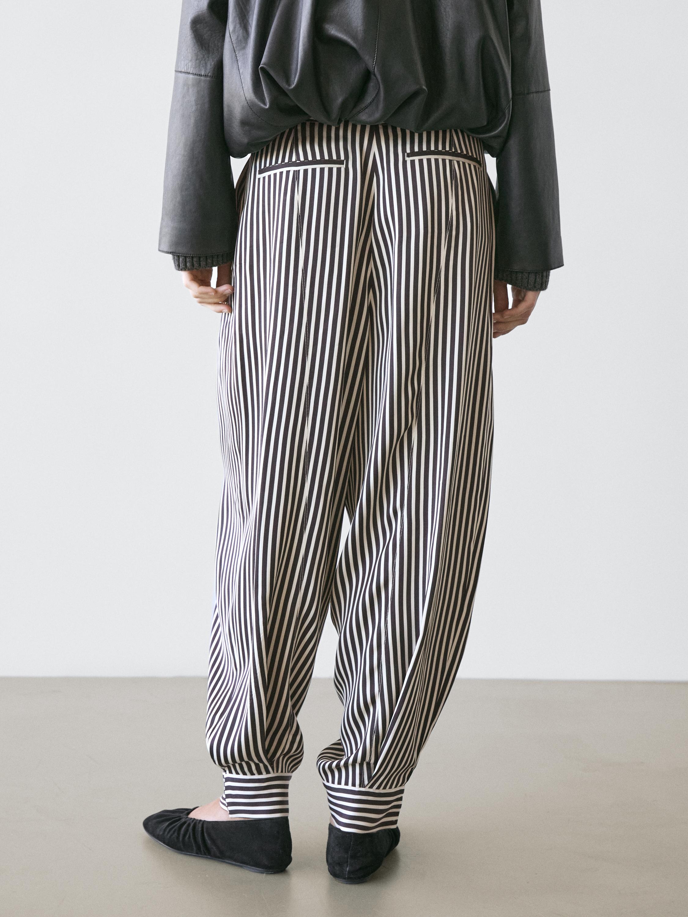 Çizgili pensli şalvar pantolon