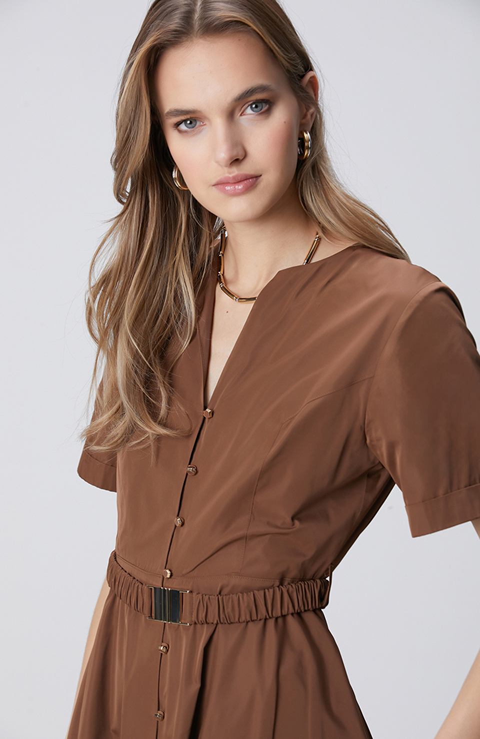 Tarçın Midi Tafta Elbise