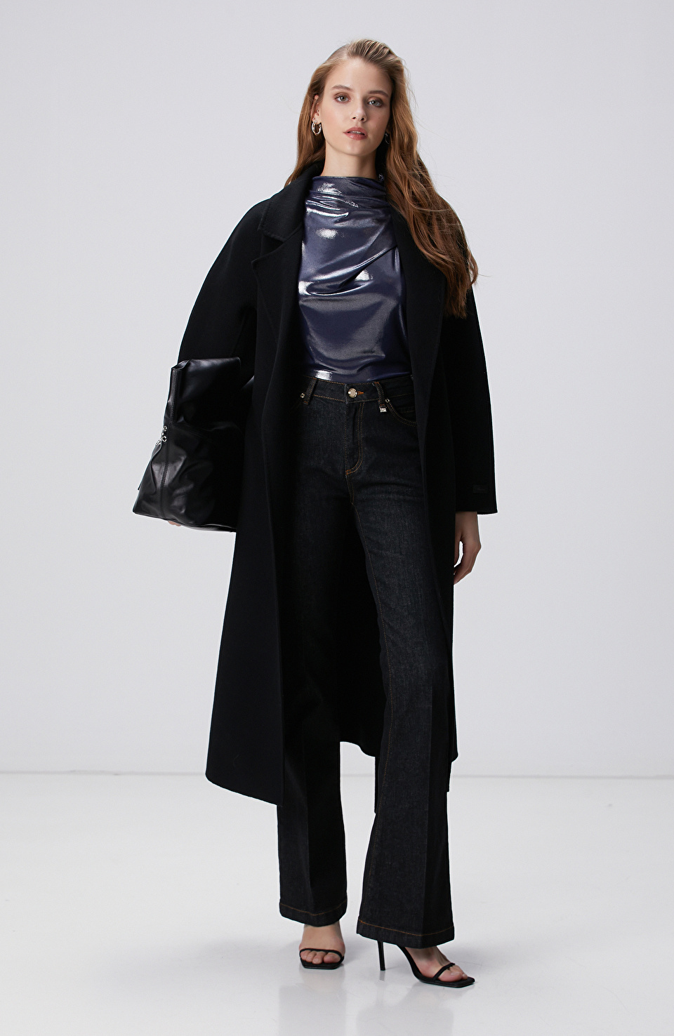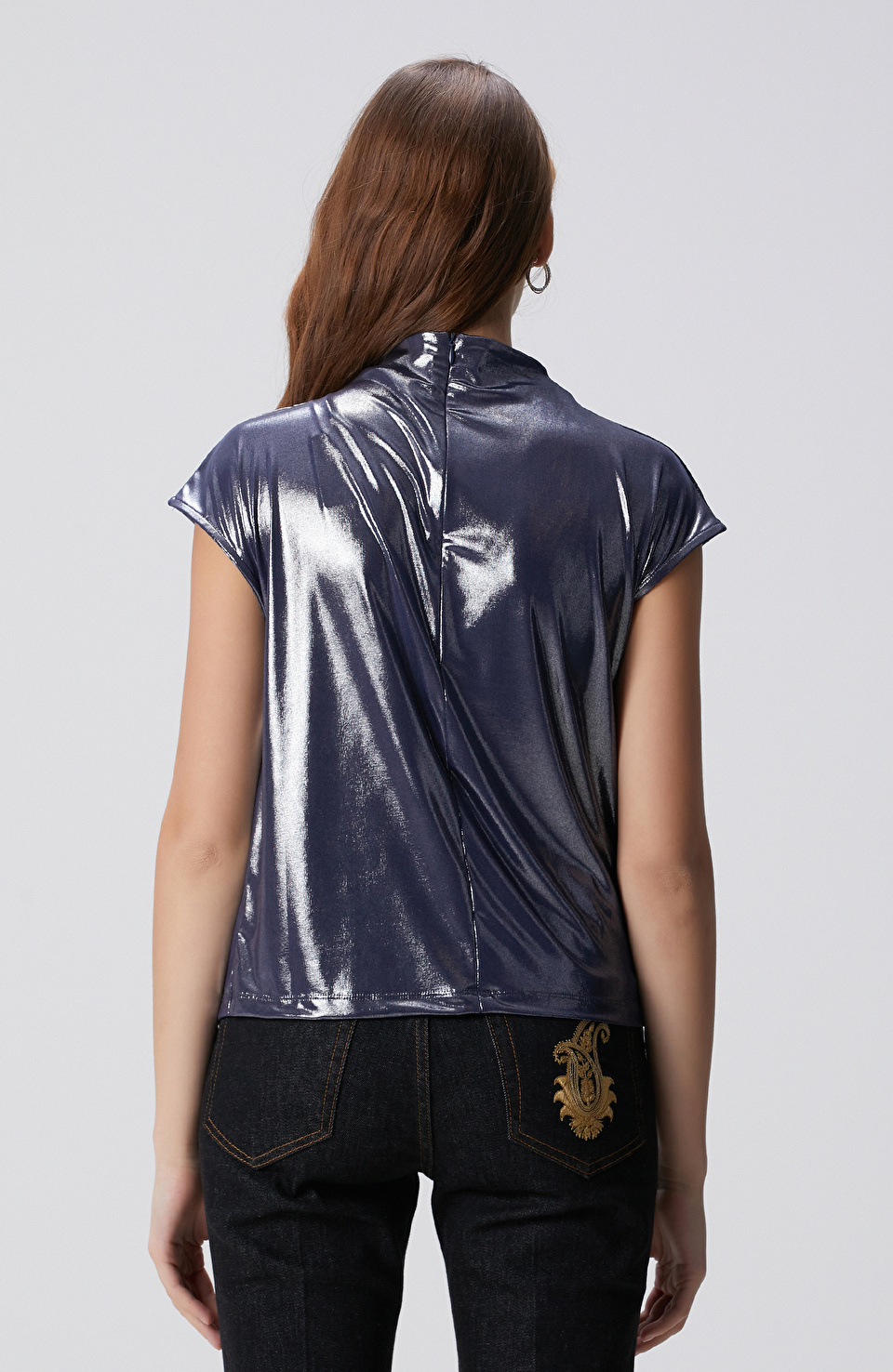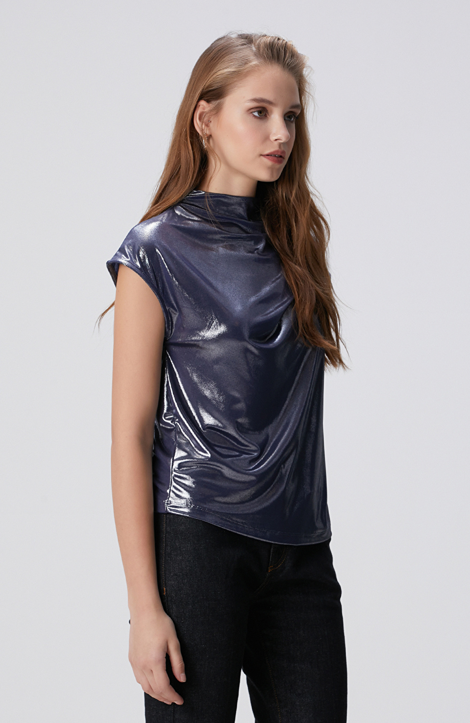 Lacivert Parlak Örme Bluz