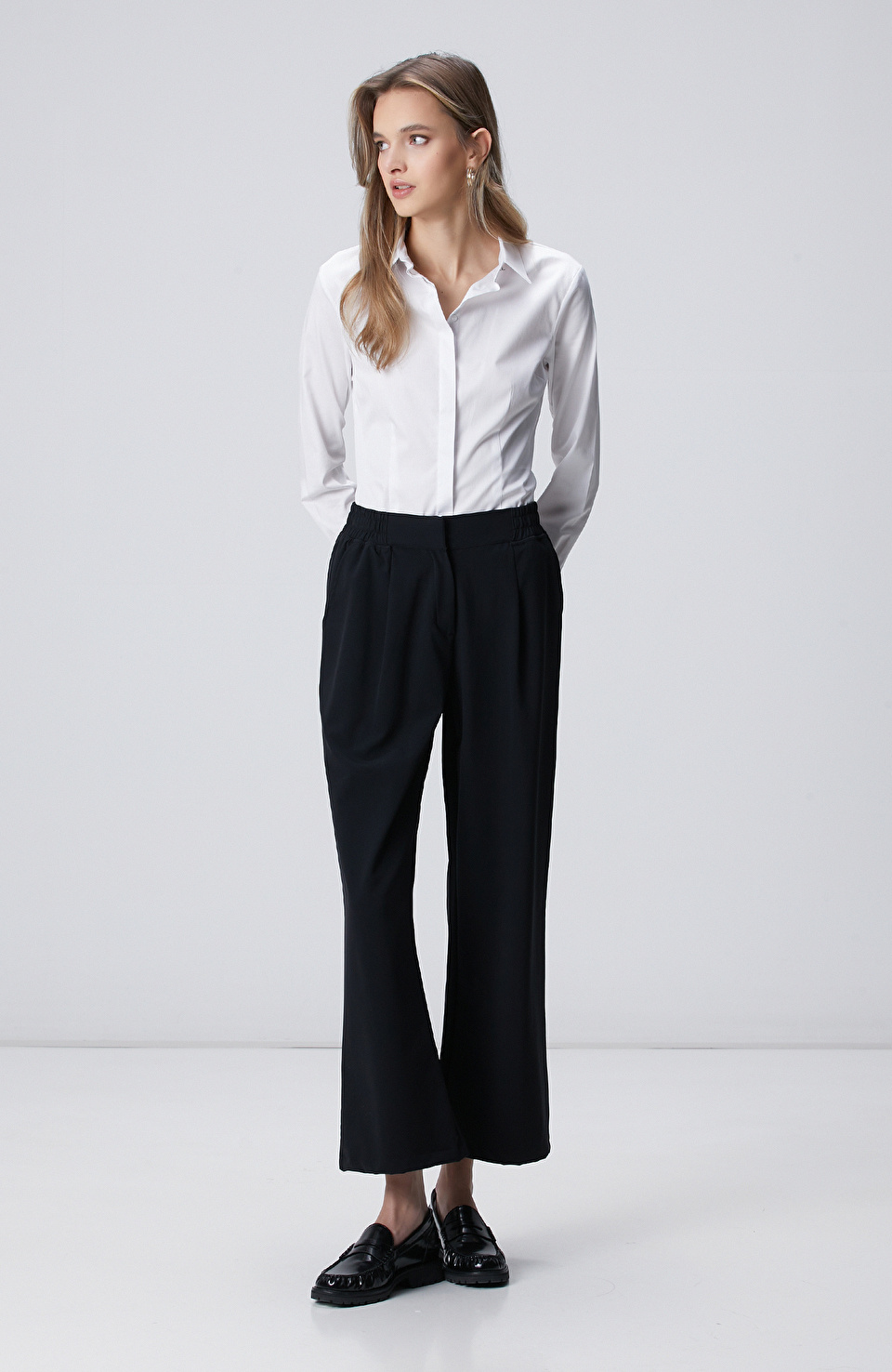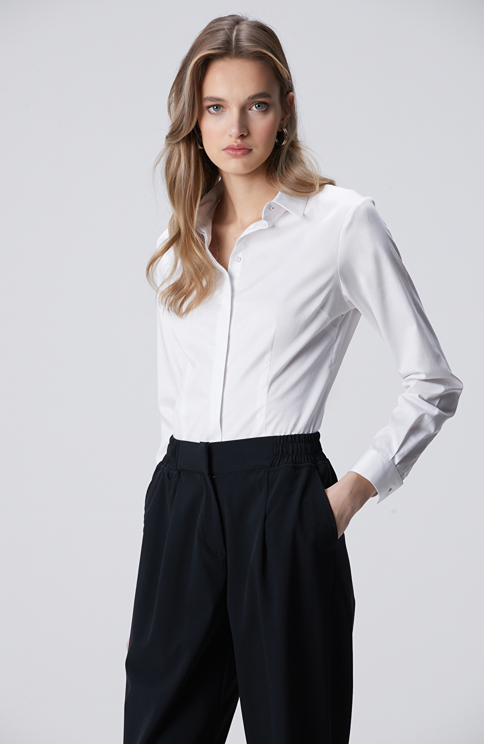 Beyaz Pamuk Saten Basic Gömlek