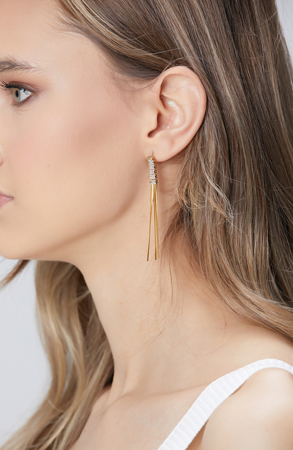 Gold Taşlı Kadın Sallantılı Küpe
