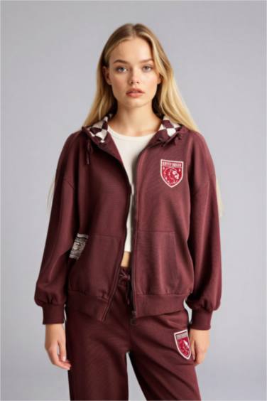 Harry Potter Oversıze Kapüşonlu Fermuarlı Sweatshirt
