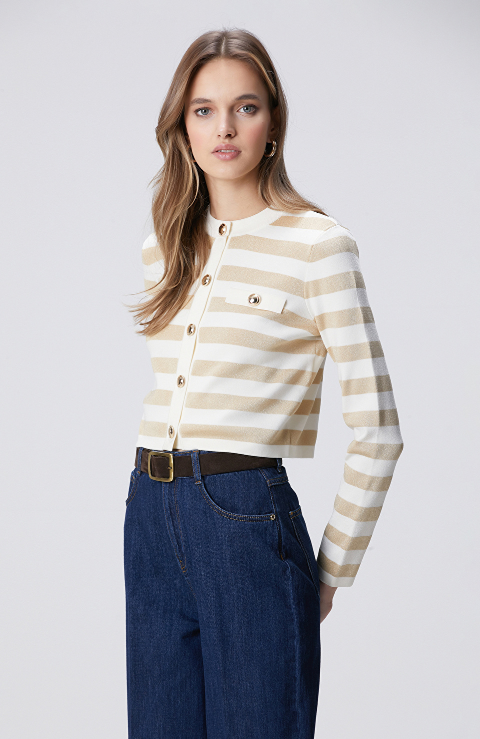 Kırık Beyaz Simli Triko Ceket