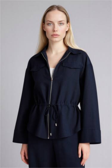 Relax Fıt Keten Karışımlı Fermuarlı Gömlek — defacto | Oneri