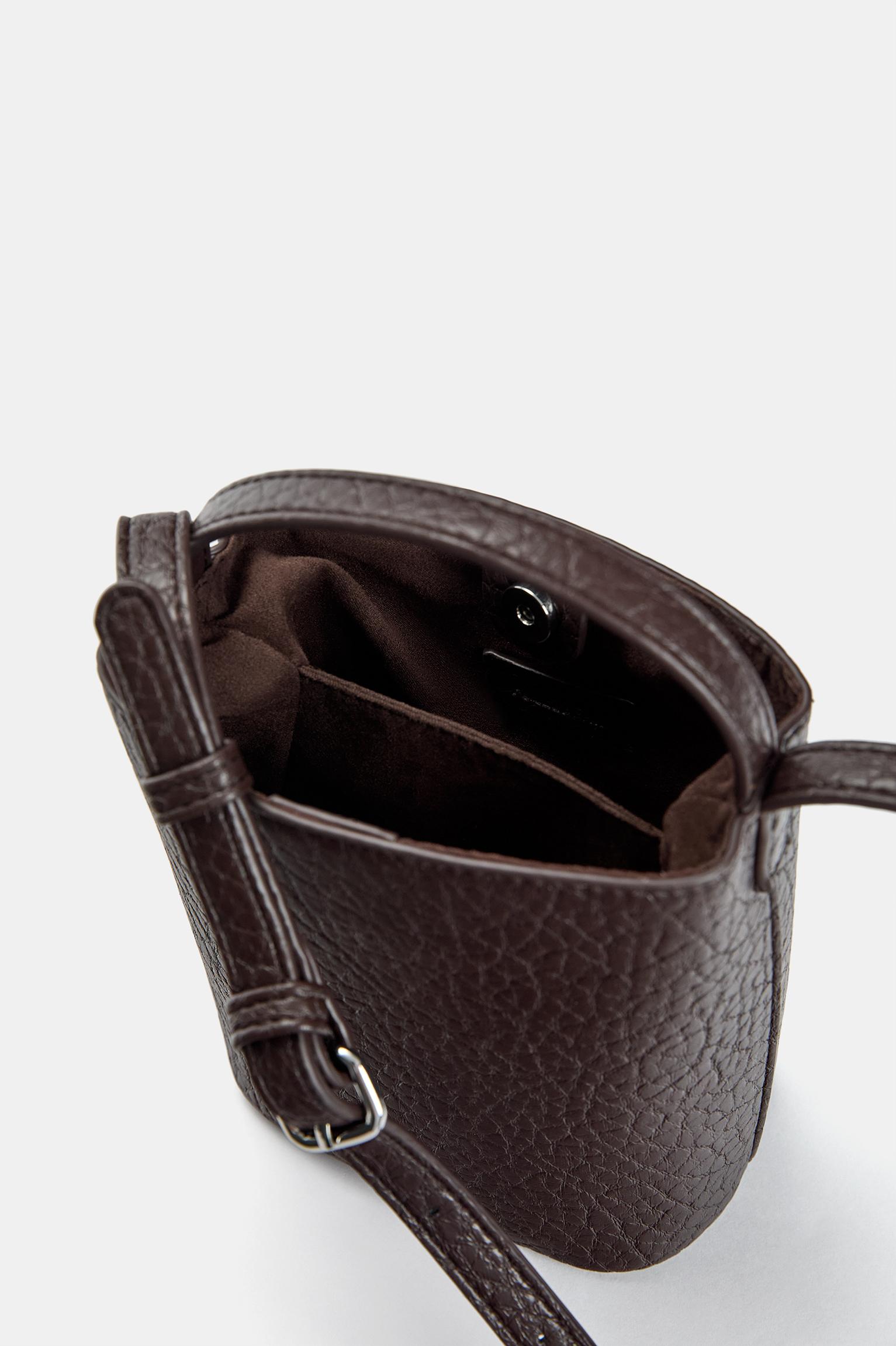 Kahverengi renginde çapraz askılı çanta. Tutma sapı ve ayarlanabilir uzun omuz askısı. Mıknatıslı kapama. <br/><br/>Yükseklik x Genişlik x Derinlik: 17 x 8,7 x 5 cm.