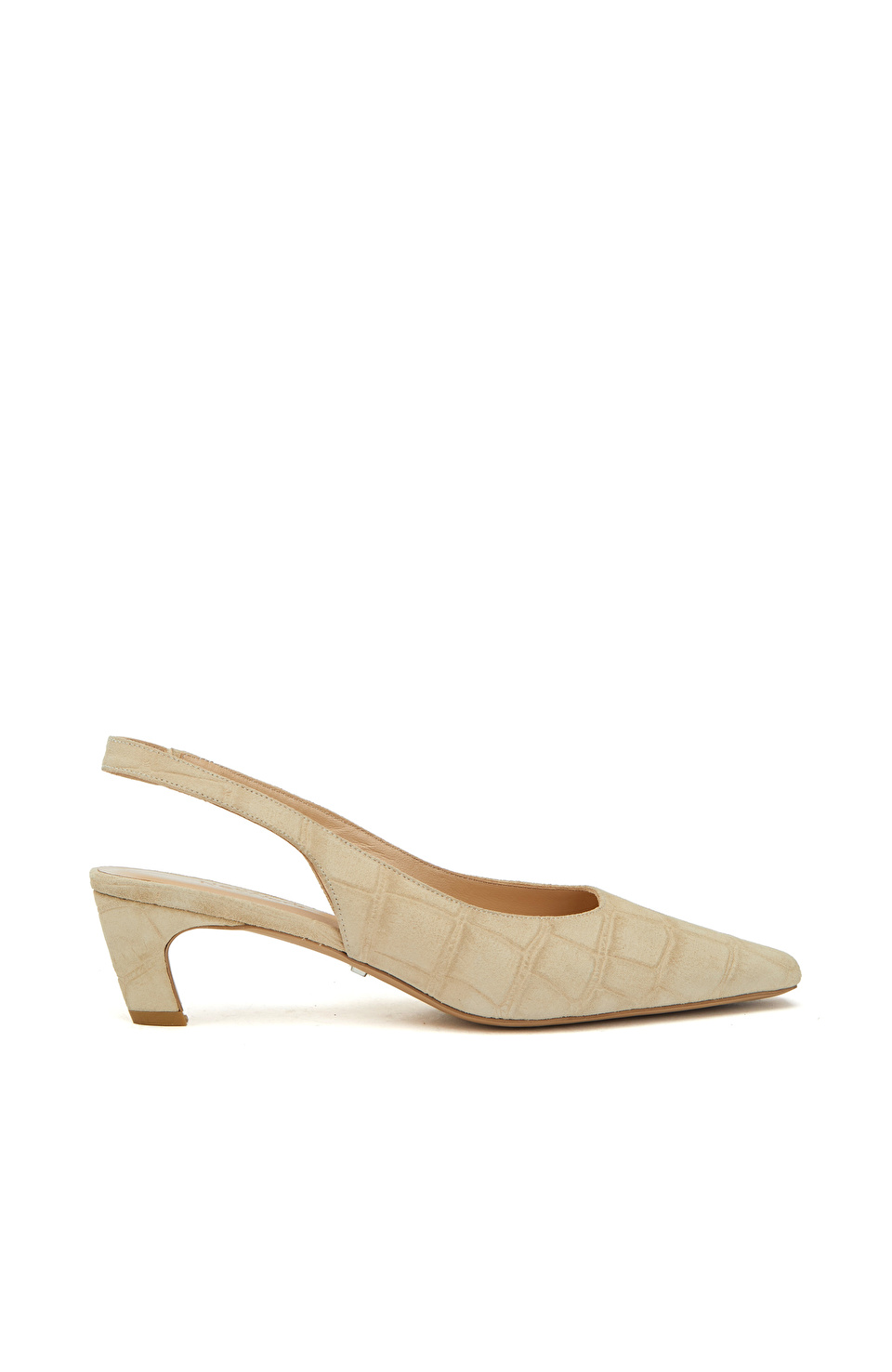 Bej Kroko Baskılı Deri Topuklu Ayakkabı