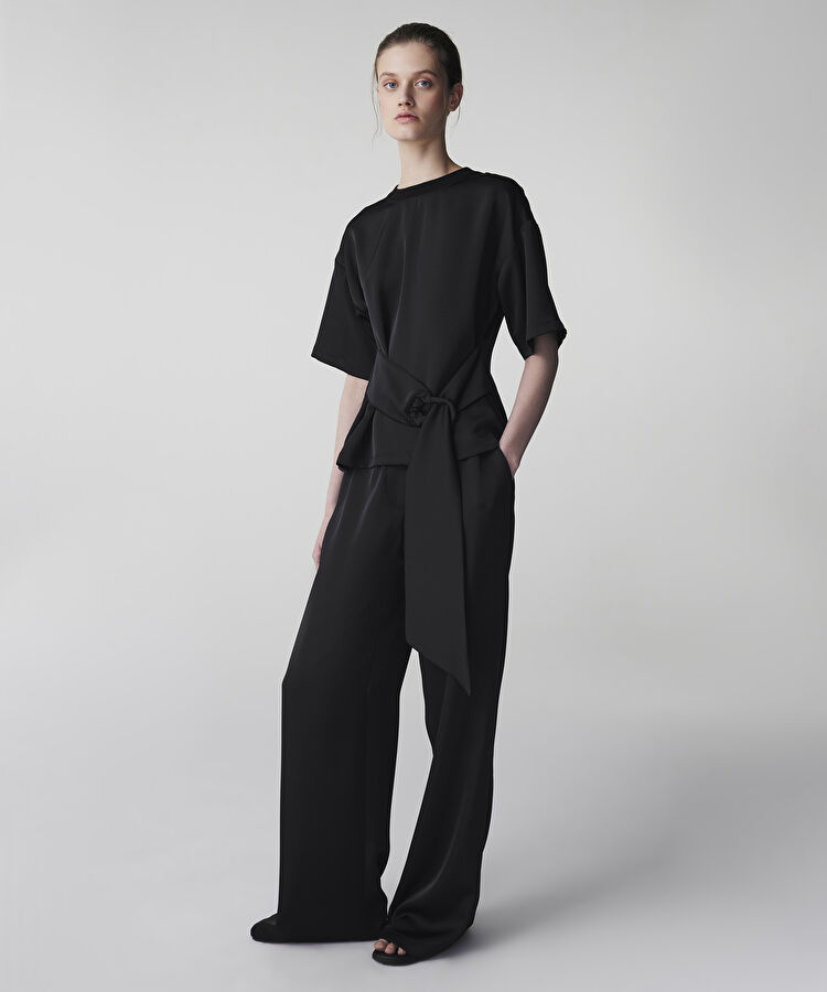 Wide leg fit saten pantolon