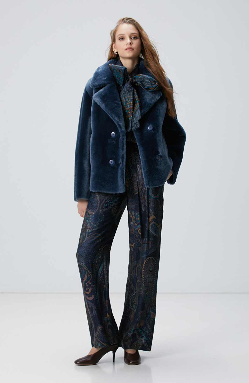 Petrol Desenli Kadın Pantolon