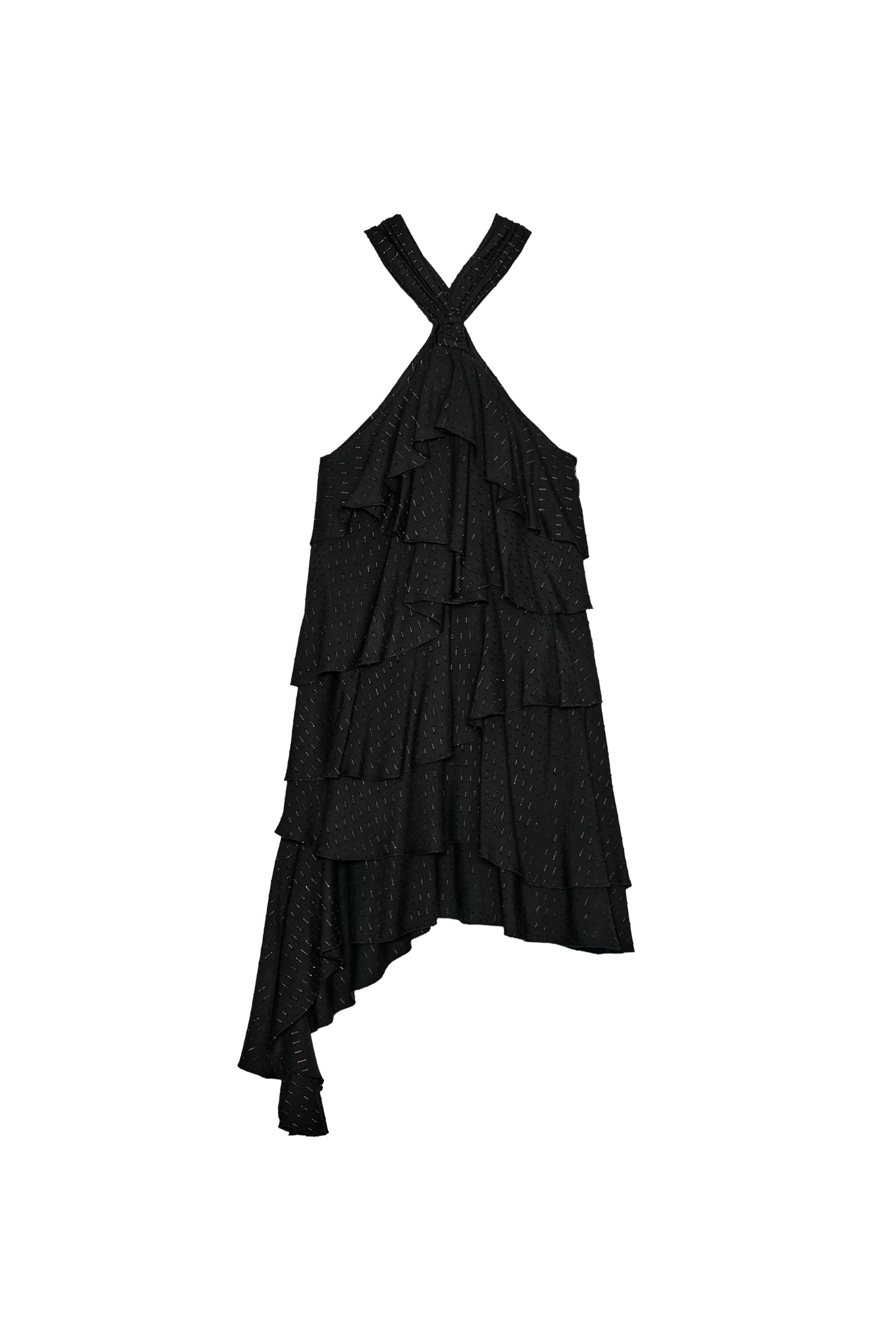 METALLIC THREAD HALTER DRESS