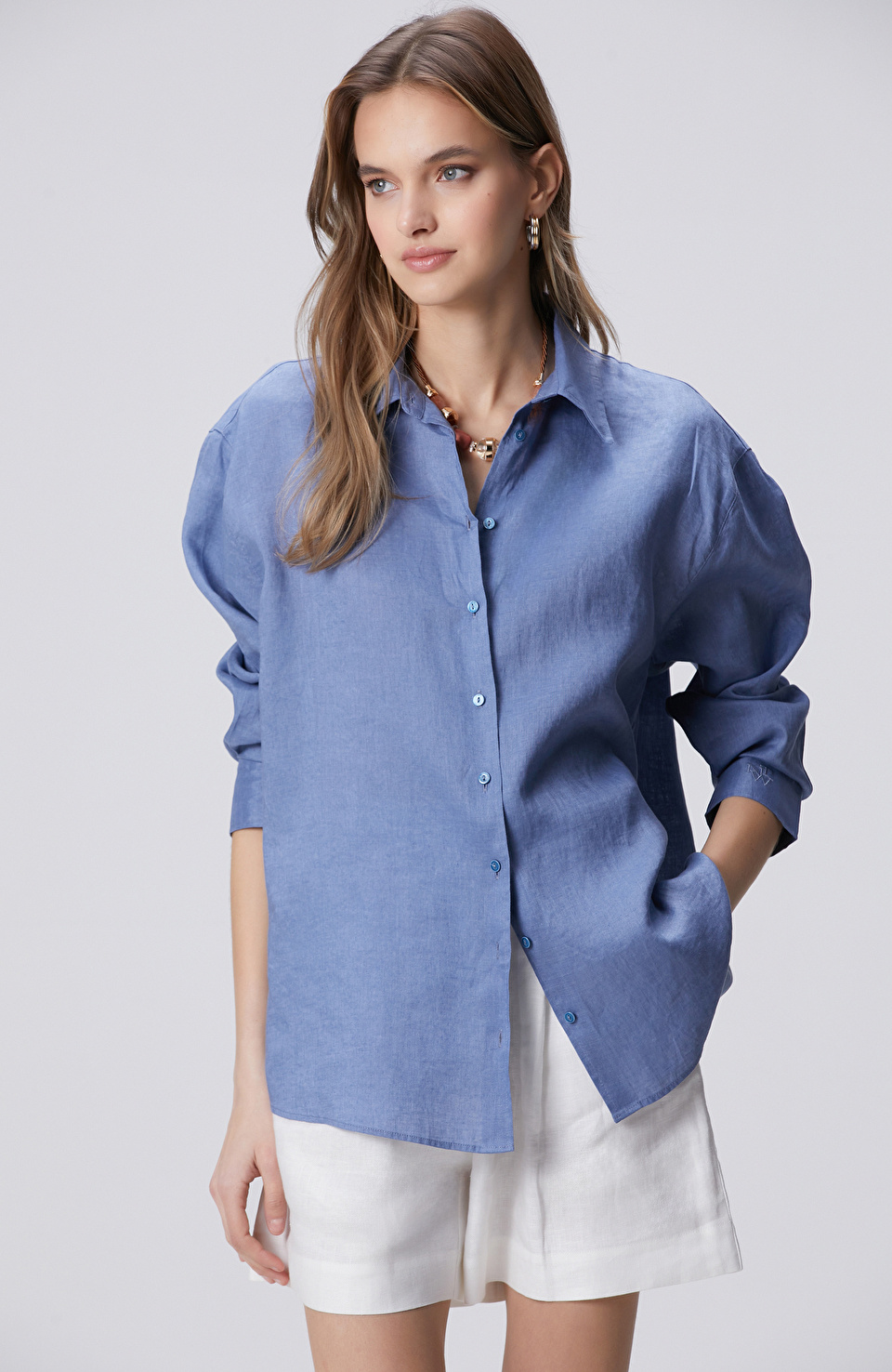 Mavi Keten Gömlek