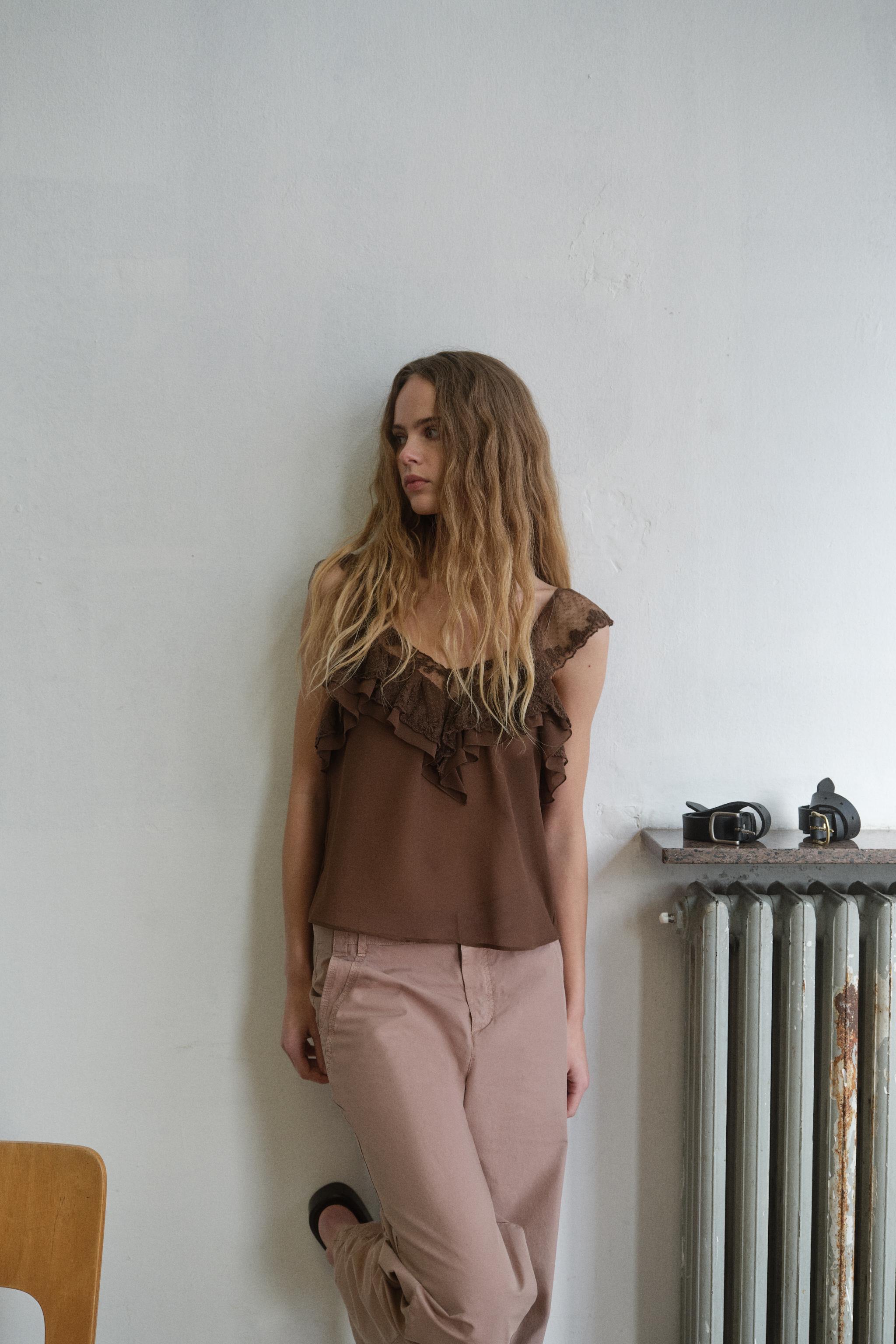 EMBROIDERED TOP WITH RUFFLES