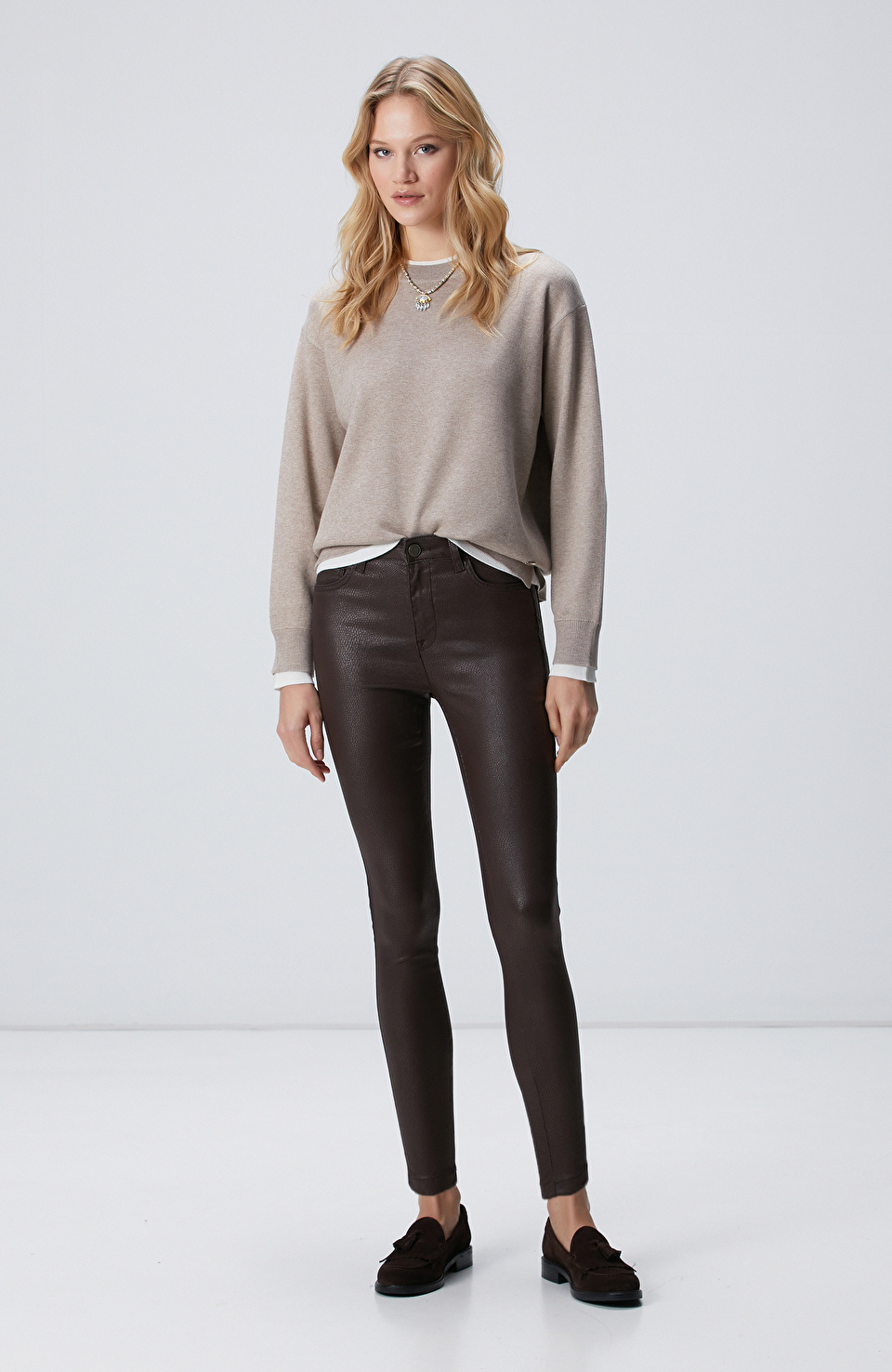 Kahverengi Kaplamalı Casual Pantolon