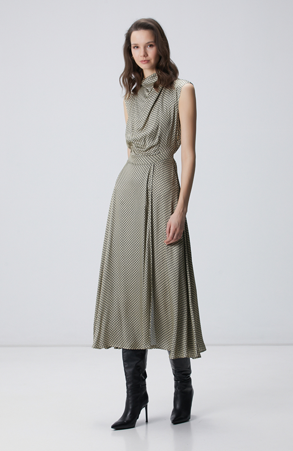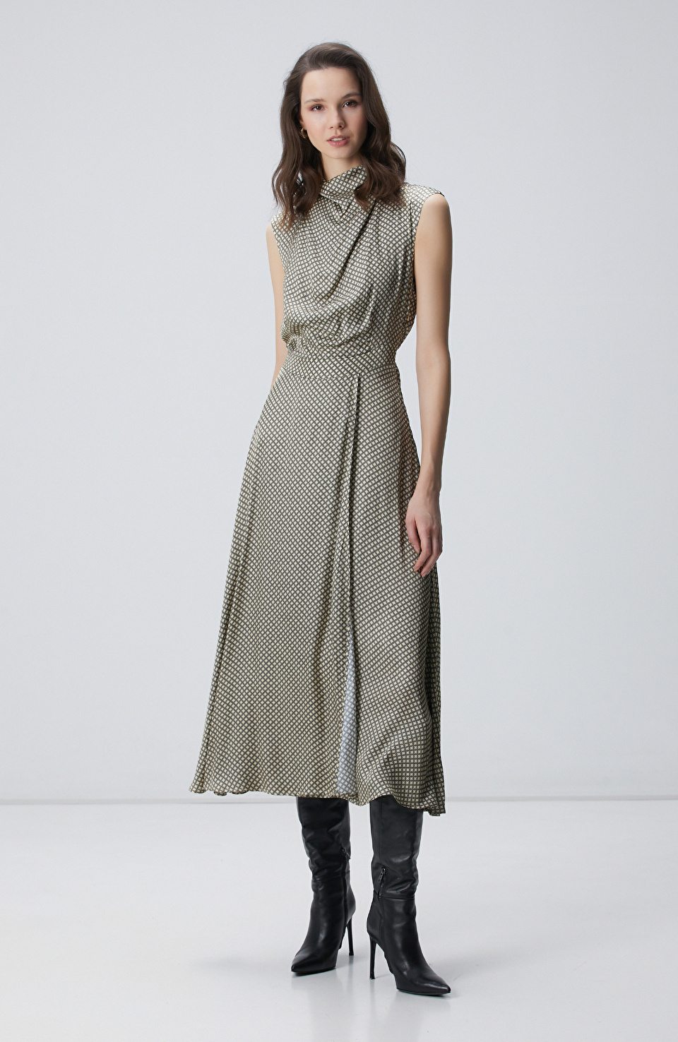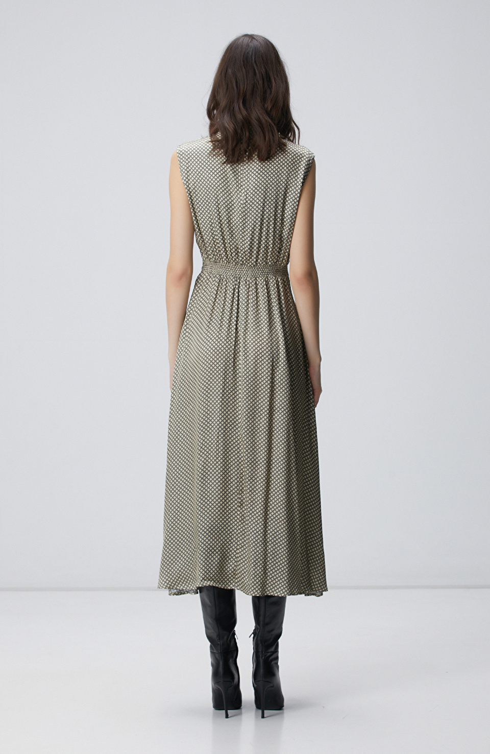 Sarı Desenli Midi Elbise