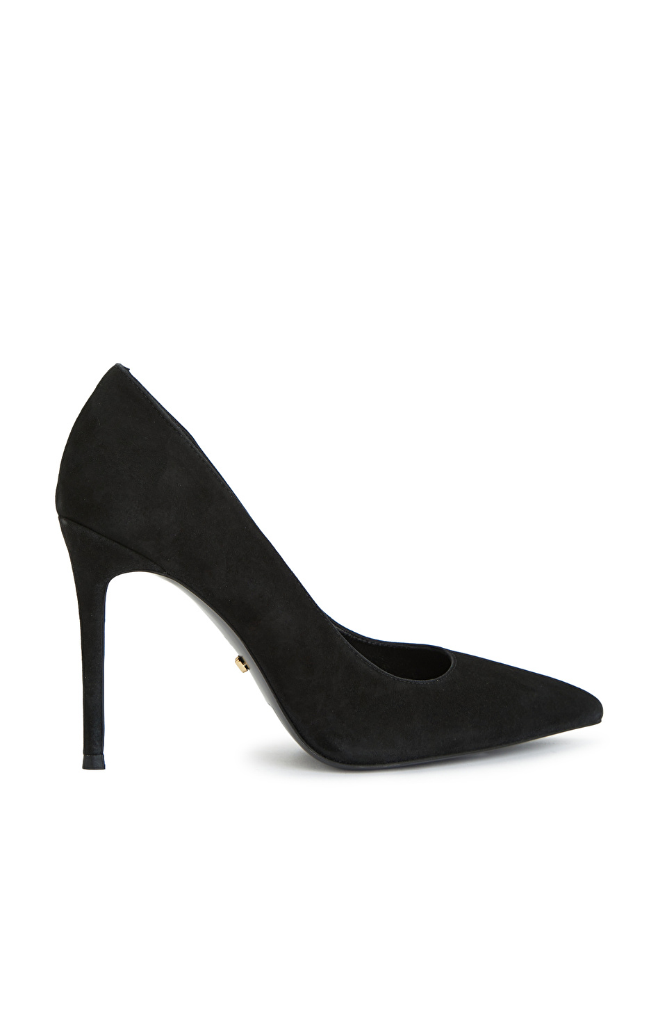 Siyah Kadın Süet Deri Topuklu Ayakkabı