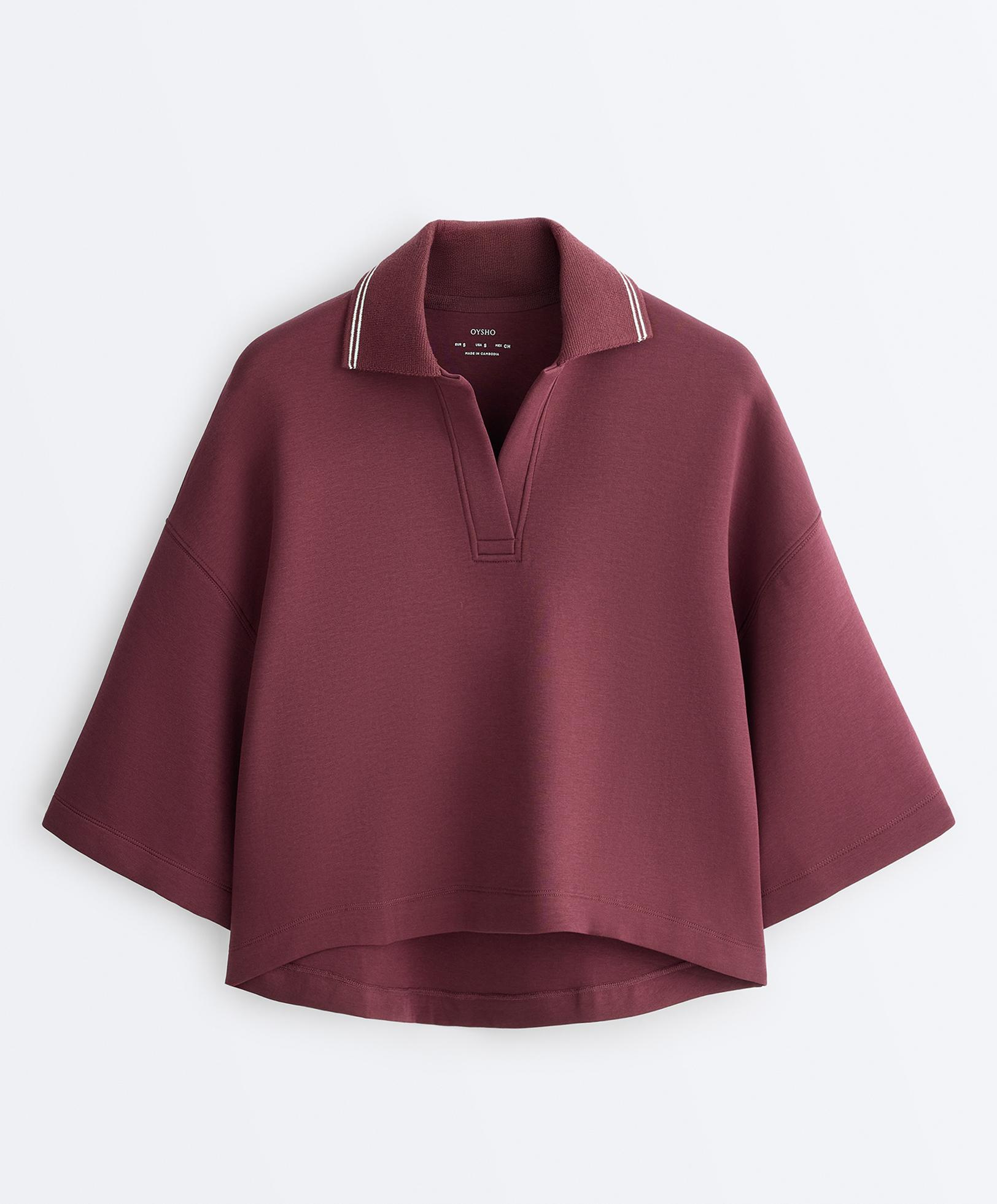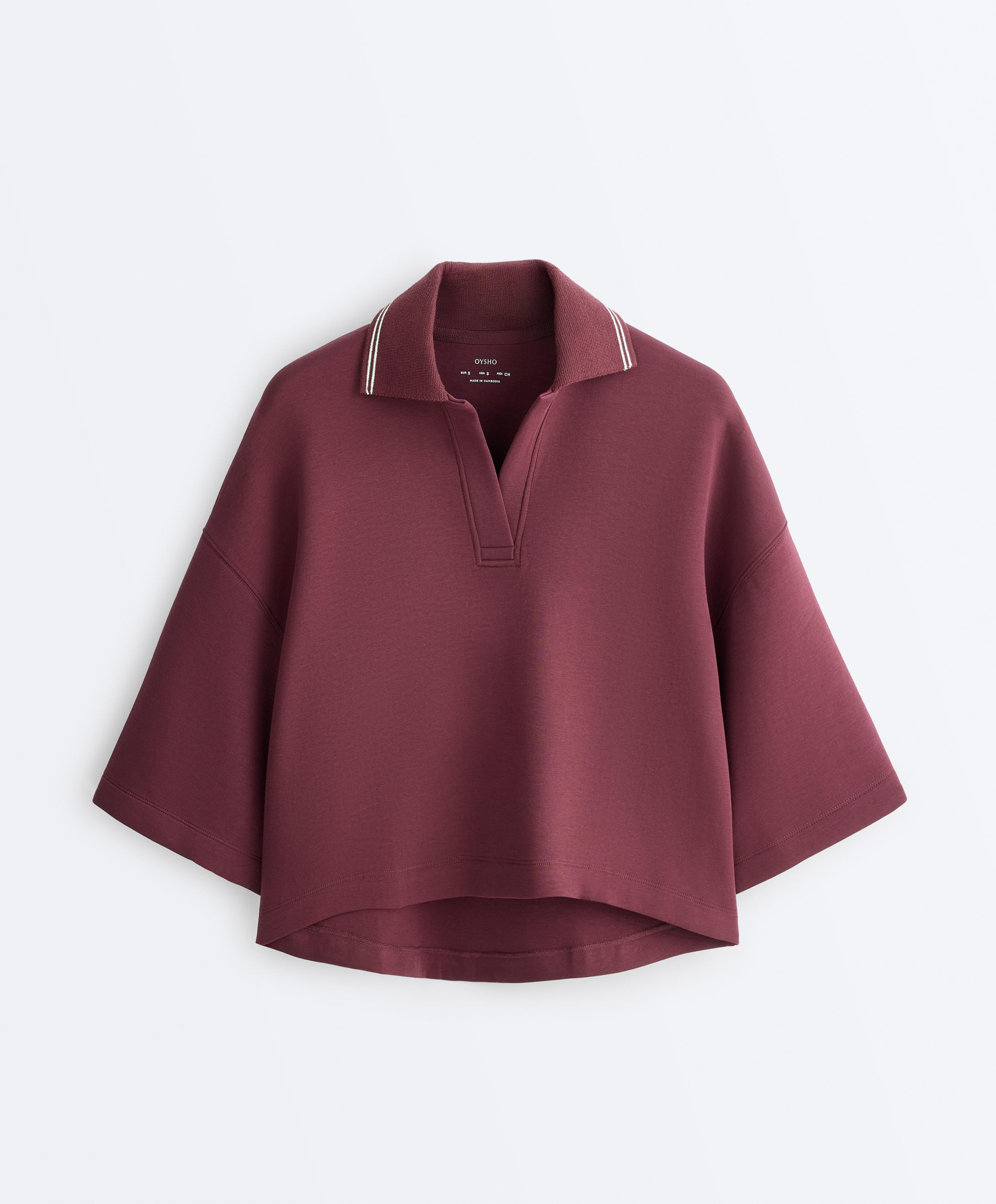 Polo yaka geniş kollu pamuklu sweatshirt