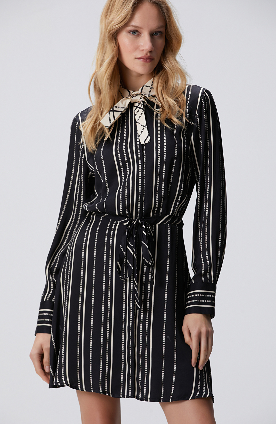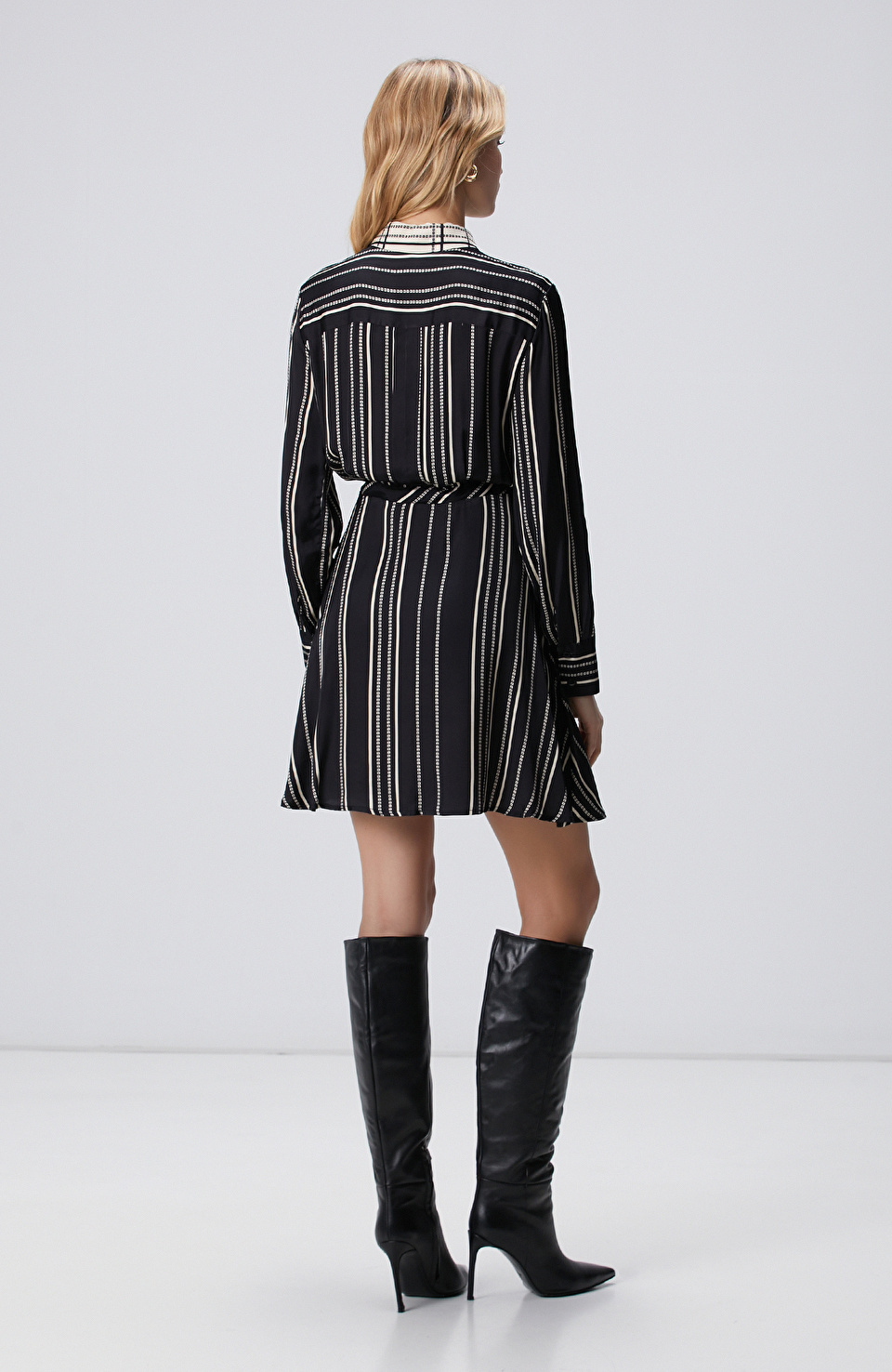 Siyah Beyaz Çizgili Gömlek Elbise