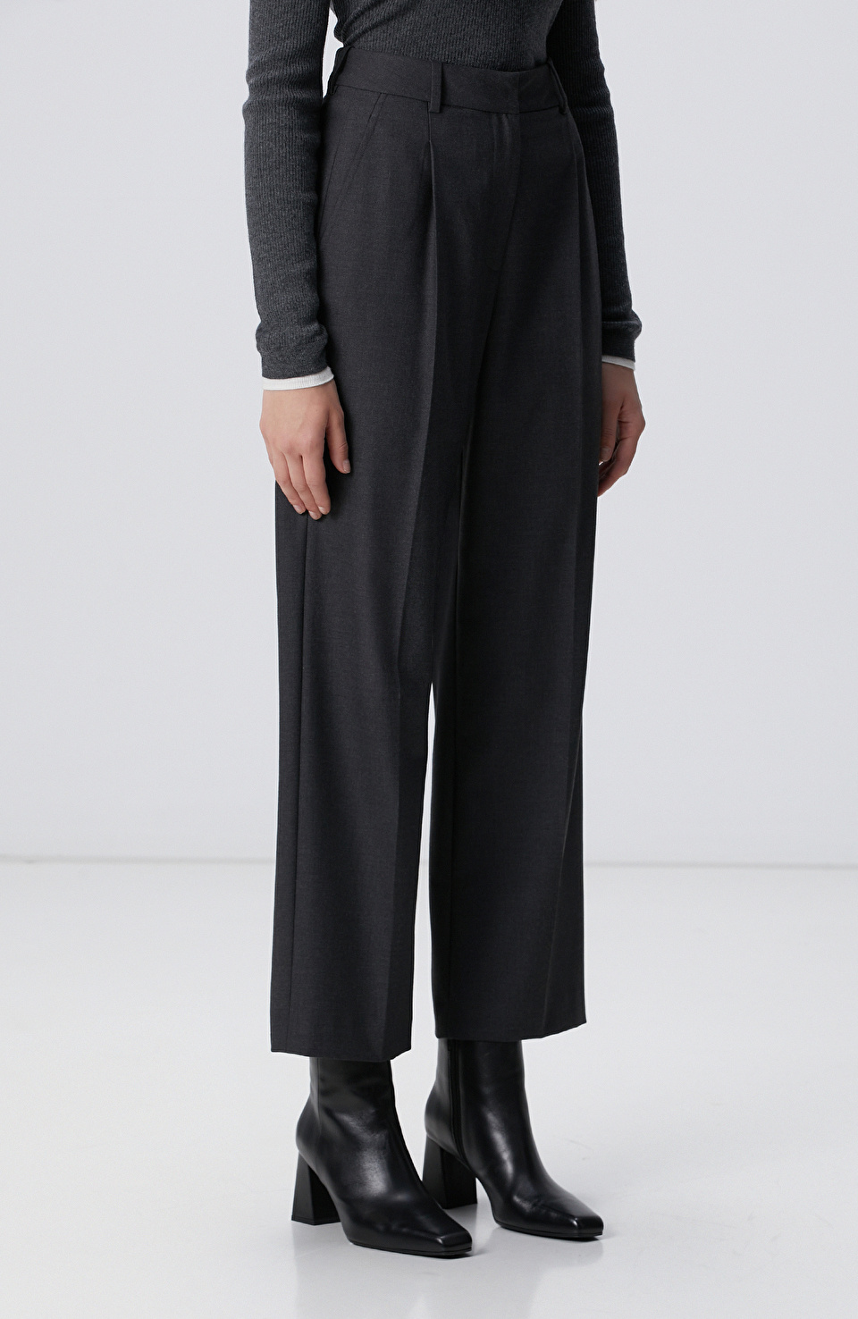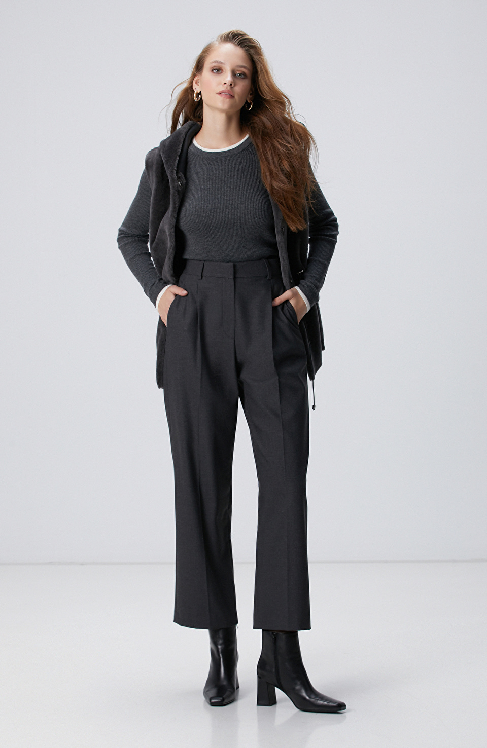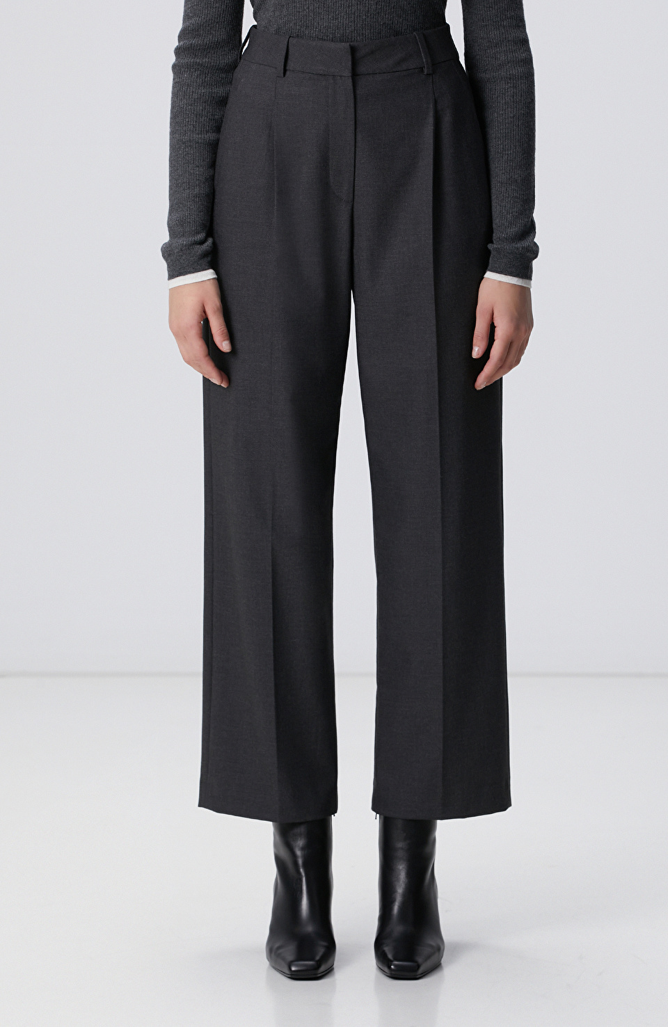 Koyu Gri Pileli Yüksek Bel Pantolon