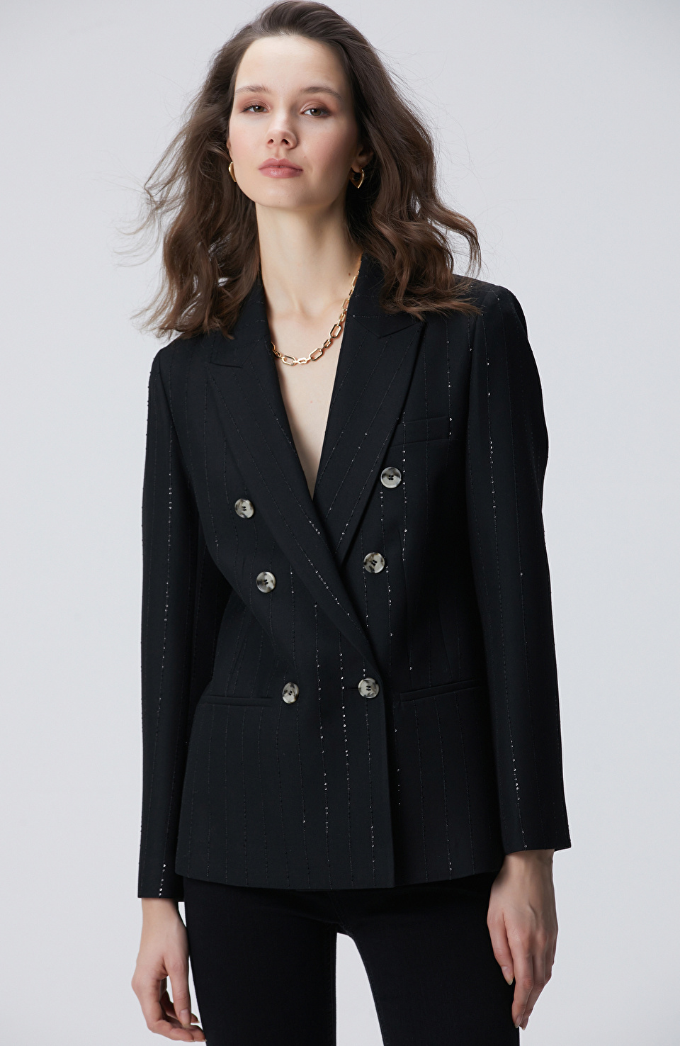 Siyah Payetli Çizgili Ceket — network | Oneri