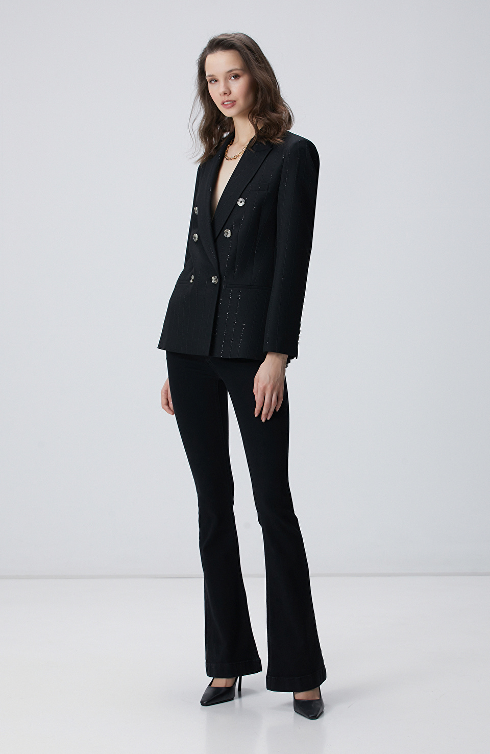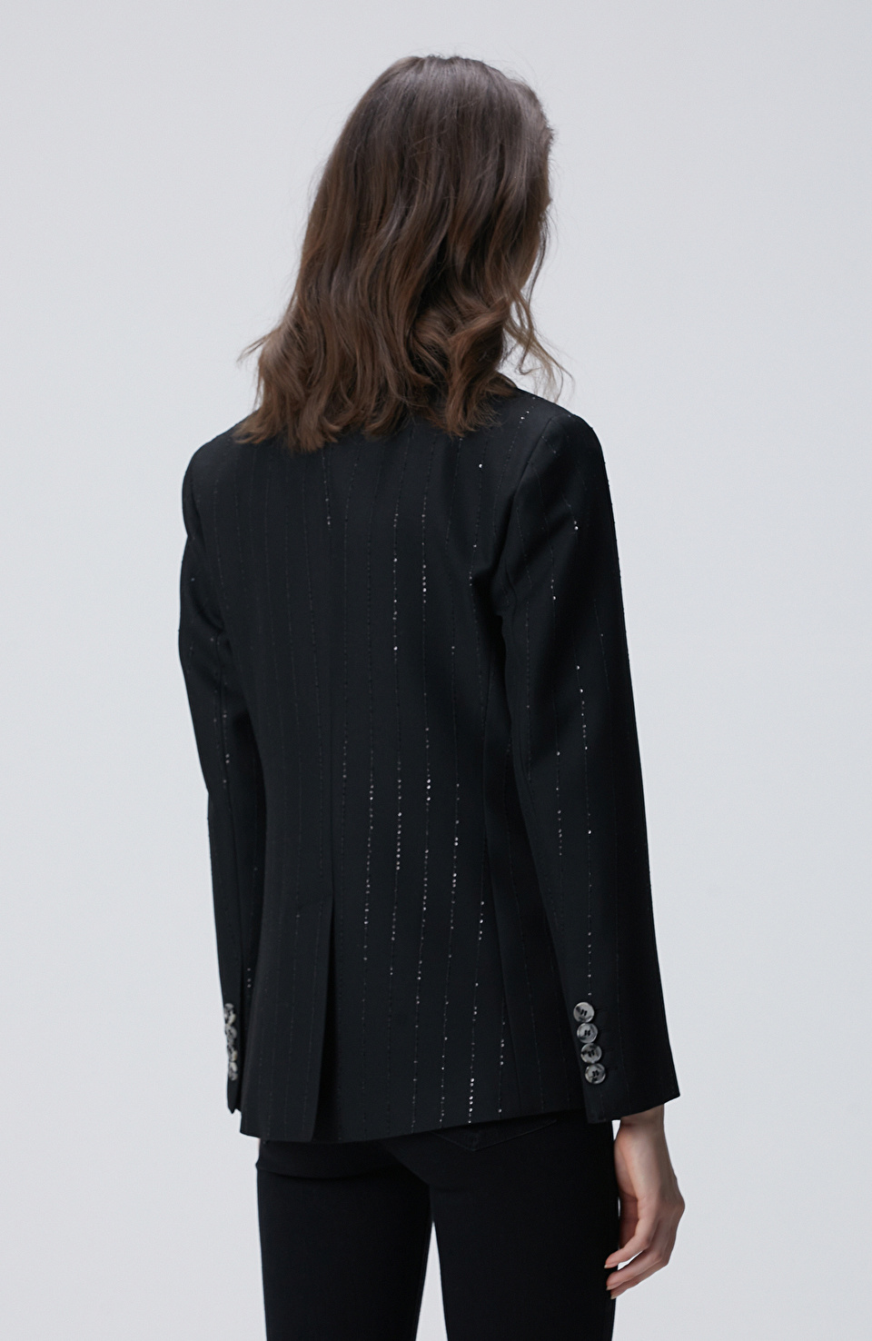 Siyah Payetli Çizgili Ceket