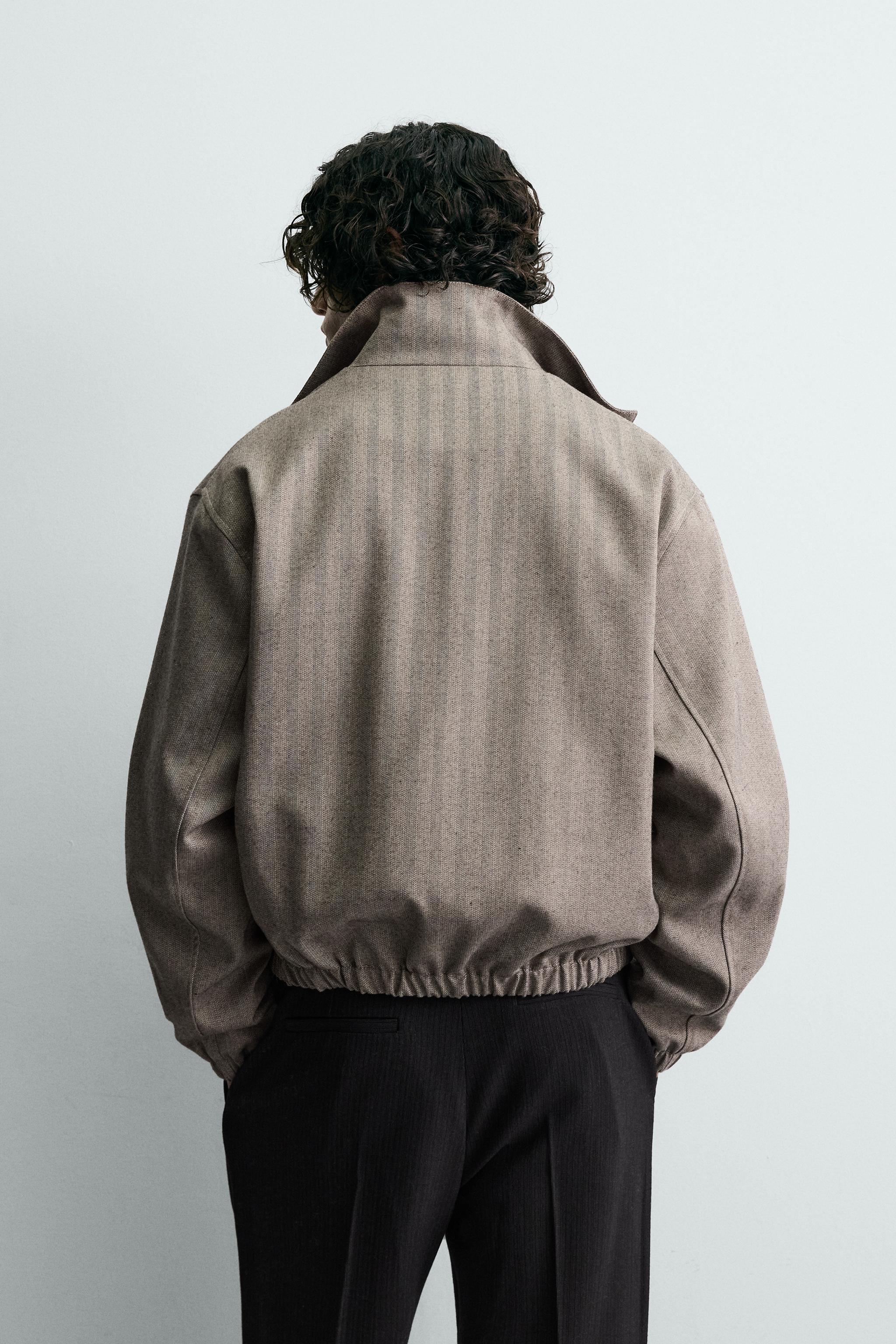 HERRINGBONE TEXTURED CROPPED FIT JACKET