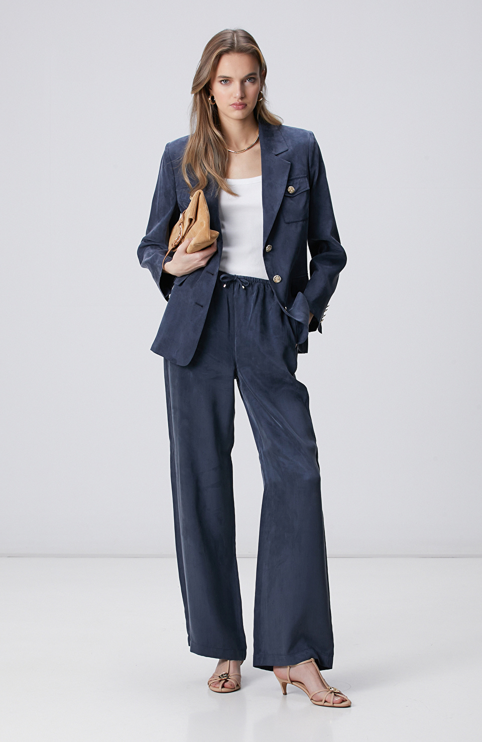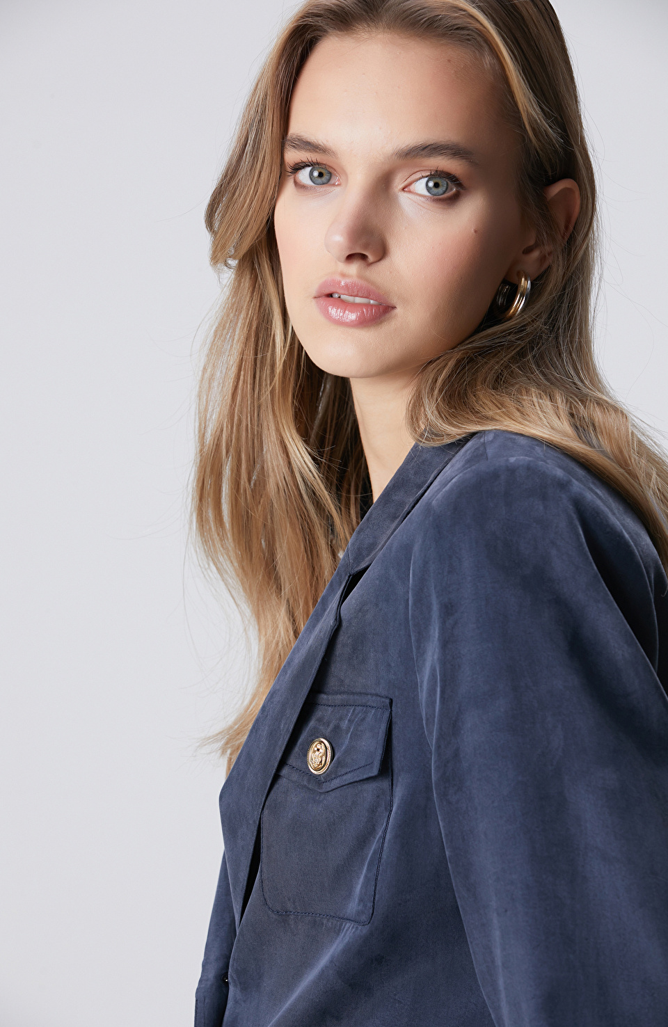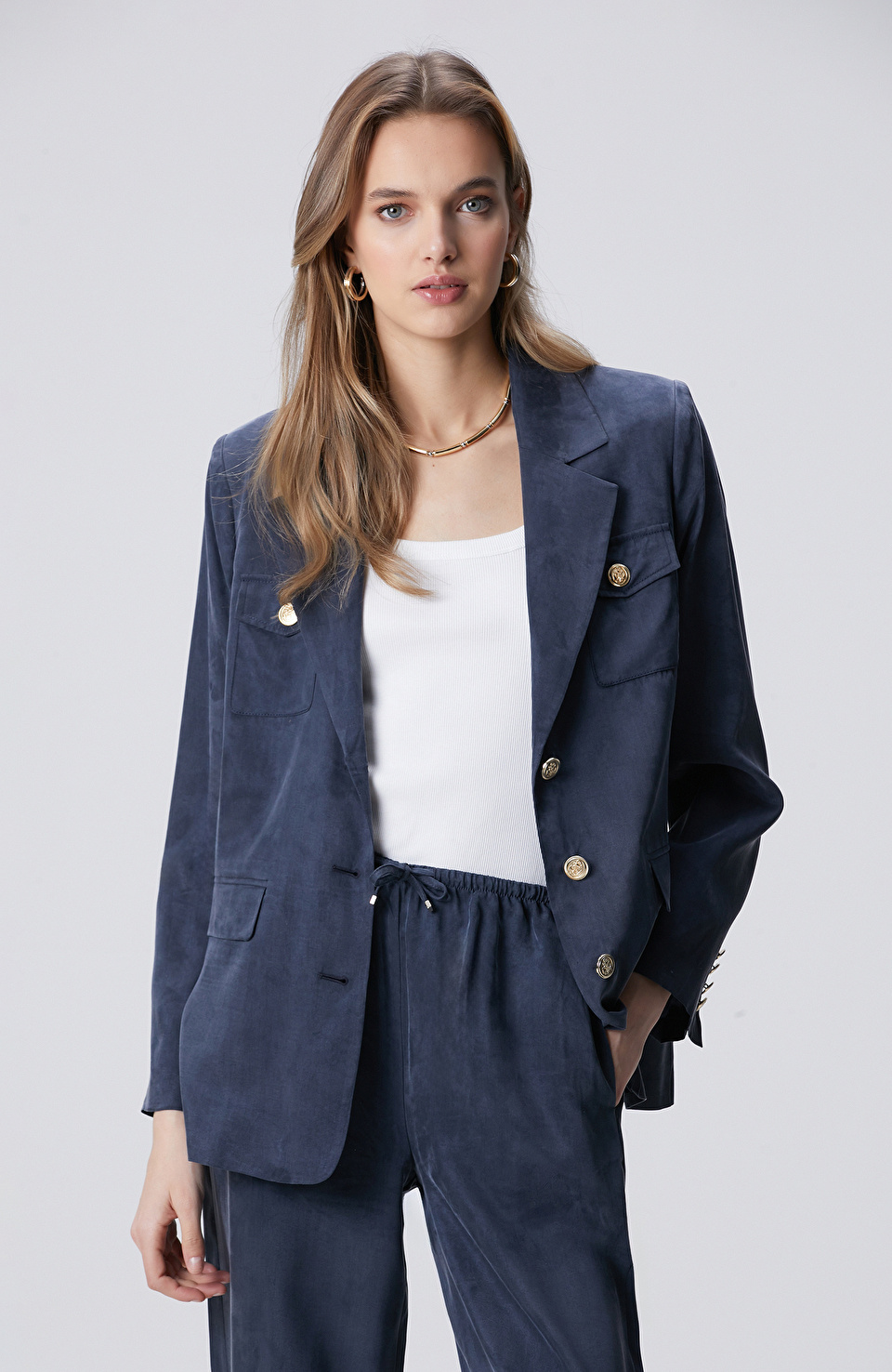 Lacivert Cupro Blazer Ceket